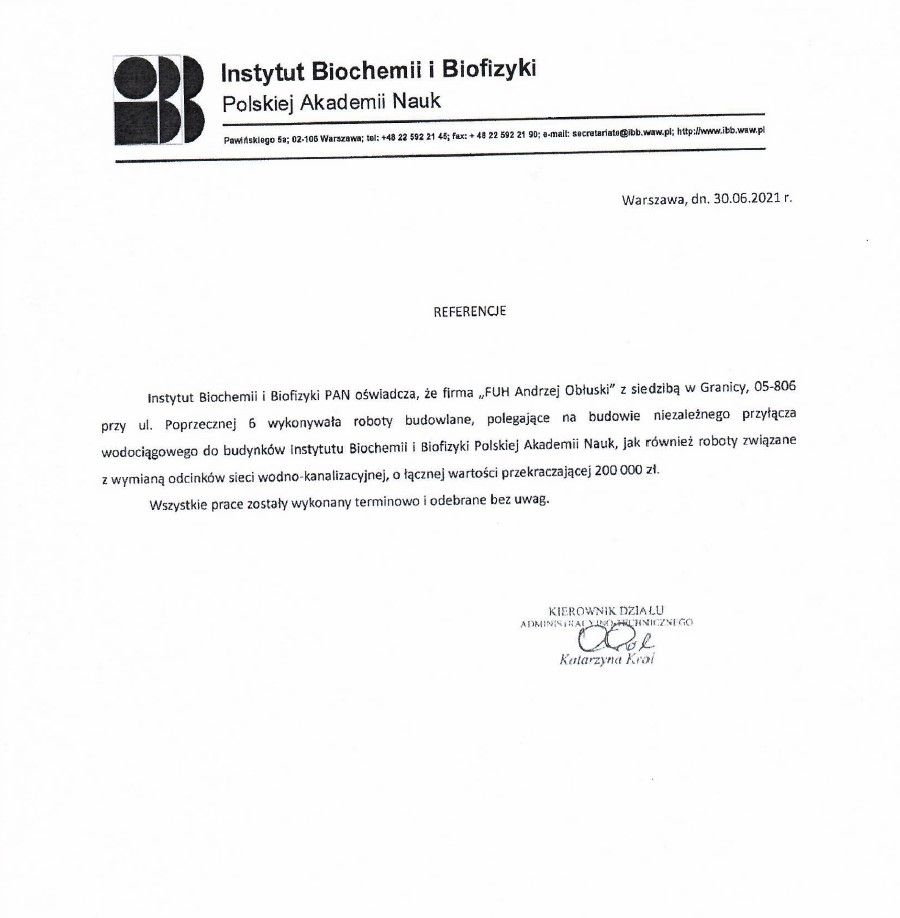 Otrzymane referencje od Instytutu Biochemii i Biofizyki Polskiej Akademii Nauk w Warszawie świadczą o naszej zdolności do realizacji zaawansowanych technicznie projektów. Prace obejmowały montaż systemów grzewczych oraz modernizację instalacji, co wymagało precyzji, zaawansowanej wiedzy technicznej oraz zastosowania innowacyjnych rozwiązań. Referencje te podkreślają terminowość realizacji oraz zgodność z oczekiwaniami klienta.